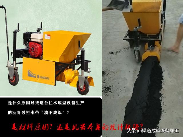 攔水帶成型機的出現(xiàn)讓高速瀝青砂攔水帶工程變得簡單,但是很多問題也出現(xiàn)了。這也是最近很多客戶一直給我反應的問題。這些客戶包括使用我們工廠設備的客戶,也包括使用其他品牌的客戶。我本著我為人人,人人為我的的和諧精神,把這些案例以及為什么會出現(xiàn)這樣的問題分析處理方法放出來,希望能幫助到遇到這些問題的施工隊。